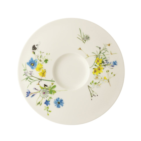 Saucer, 7-3/8" dia., 7-3/8"L x 7-3/8"W x 1/2"H, round, scratch-resistant, microwave and dishwasher safe, bone china, white, with floral decoration, Rosenthal, Rosenthal, Brillance Fleurs des Alpes (fits 10530-405108-10422) (Special Order Item)