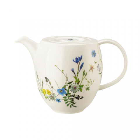 Coffee Pot, 51 oz., round, with lid, scratch-resistant, microwave and dishwasher safe, bone china, white, with floral decoration, Rosenthal, Rosenthal, Brillance Fleurs des Alpes (Special Order Item)