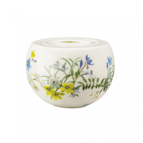 Sugar Bowl, 8-1/2 oz., 4-1/8" dia., 4-1/8"L x 4-1/8"W x 2-7/8"H, round, with lid, scratch-resistant, microwave and dishwasher safe, bone china, white, with floral decoration, Rosenthal, Rosenthal, Brillance Fleurs des Alpes