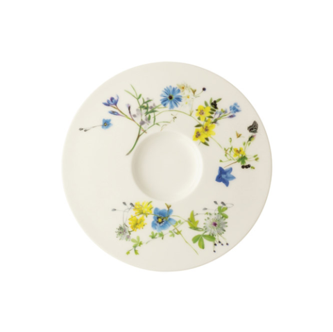 Tea/Cappuccino Saucer, 6-3/8" dia., 6-3/8"L x 6-3/8"W x 1/2"H, round, scratch-resistant, microwave and dishwasher safe, bone china, white, with floral decoration, Rosenthal, Rosenthal, Brillance Fleurs des Alpes (fits 10530-405108-14772, 10530-405108-14677)