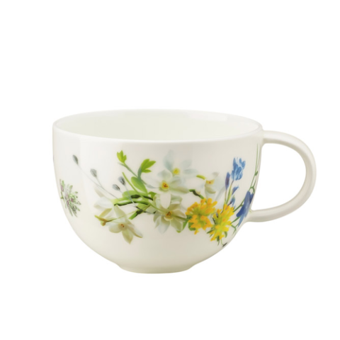 Combi Cup, 10-1/4 oz., 3-3/8" dia., 4-1/2"L x 3-5/8"W x 2-1/2"H, scratch-resistant, microwave and dishwasher safe, bone china, white, with floral decoration, Rosenthal, Rosenthal, Brillance Fleurs des Alpes (fits 10530-405108-14676, 10530-405108-14942)
