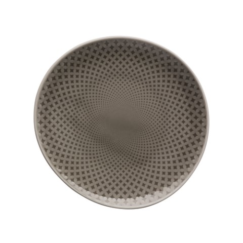 Plate, 6-1/4" dia., 6-1/4"L x 6-1/8"W x 5/8"H, round/freeform, flat, hand-glazed, relief on front & back, dishwasher & microwave safe, porcelain, Rosenthal, Junto, pearl grey