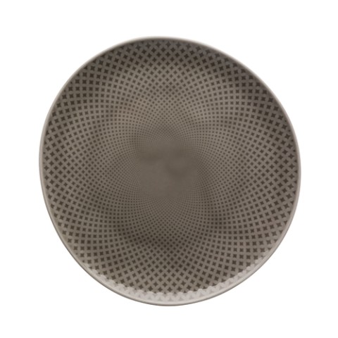 Plate, 8-5/8" dia., 8-5/8"L x 8-1/4"W x 5/8"H, round/freeform, flat, hand-glazed, relief on front & back, dishwasher & microwave safe, porcelain, Rosenthal, Junto, pearl grey