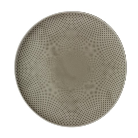 Plate, 12-3/8" dia., 12-3/8"L x 12"W x 1-1/8"H, round/freeform, flat, hand-glazed, relief on front & back, dishwasher & microwave safe, porcelain, Rosenthal, Junto, pearl grey