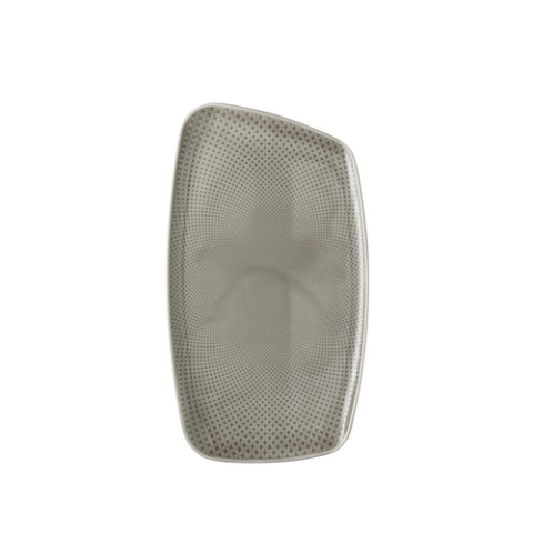 Platter, 14-3/8"L x 8-1/8"W x 3/4"H, rectangular/freeform, hand-glazed, relief on front & back, dishwasher & microwave safe, porcelain, Rosenthal, Junto, pearl grey