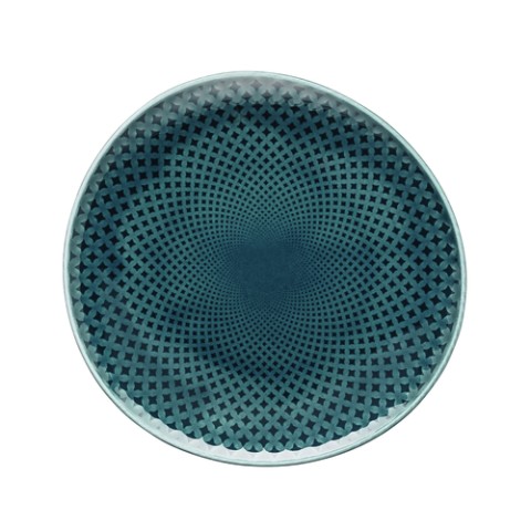 Plate, 6-1/4" dia., 6-1/4"L x 6-1/8"W x 5/8"H, round/freeform, flat, hand-glazed, relief on front & back, dishwasher & microwave safe, porcelain, Rosenthal, Junto, ocean blue