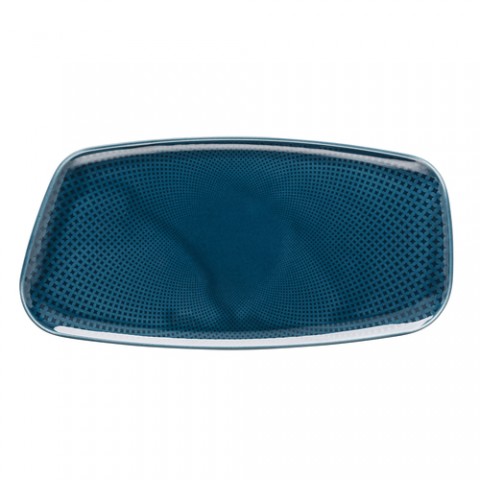 Platter, 11-3/4"L x 5-7/8"W x 3/4"H, rectangular/freeform, hand-glazed, relief on front & back, dishwasher & microwave safe, porcelain, Rosenthal, Junto, ocean blue