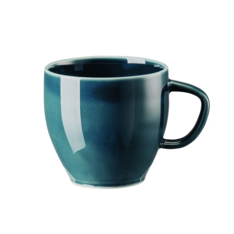 Cup, 7-3/4 oz., 2-3/4" dia., 4-1/8"L x 3-1/8"W x 3"H, with handle, hand-glazed, dishwasher & microwave safe, porcelain, Rosenthal, Junto, ocean blue (fits 10540-405202-14771)