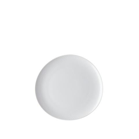 Plate, 10-5/8" dia., 10-5/8"L x 10-1/4"W x 7/8"H, round/free form, flat, hand-glazed, relief on front & back, dishwasher & microwave safe, porcelain, Rosenthal, Junto, white