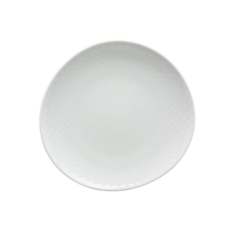 Plate, 6-1/4" dia., 6-1/4"L x 6-1/8"W x 5/8"H, round/freeform, flat, hand-glazed, relief on front & back, dishwasher & microwave safe, porcelain, Rosenthal, Junto, white