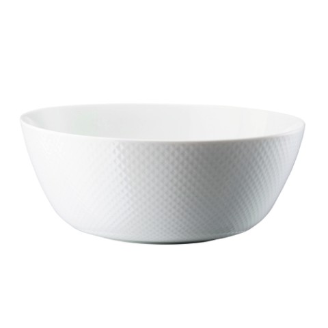 Bowl, 111-1/2 oz., 10-1/8" dia., 10-1/8"L x 10-1/8"W x 4-1/8"H, round, hand-glazed, relief on outside, dishwasher & microwave safe, porcelain, Rosenthal, Junto, white