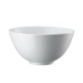 Bowl, 25-1/4 oz., 6-1/4" dia., 6-1/4"L x 6-1/4"W x 3-1/4"H, round, hand-glazed, relief on outside, dishwasher & microwave safe, porcelain, Rosenthal, Junto, white
