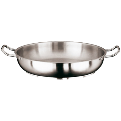 Paella Pan, 1.6 gal, 14-1/8" dia. x 2-3/8"H, stainless steel sandwiched around aluminum plate, without lid, induction ready, dual welded handles, dishwasher safe, Paderno, Grand Gourmet, NSF