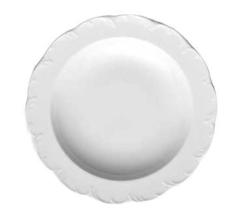 Soup Plate, 9" dia., 9"L x 9"W x 1-1/2"H, dishwasher and microwave safe, Monbijou, white