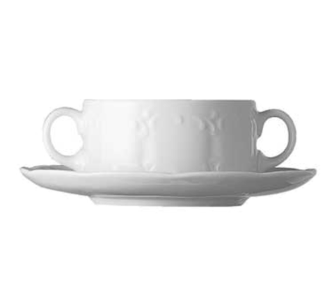 Soup Cup, 8-1/2 oz., 3-5/8" dia., 5-5/8"L x 3-7/8"W x 2"H, double handled, dishwasher and microwave safe, Monbijou, white (fits 11420-800001-30421, 11420-800001-34645)