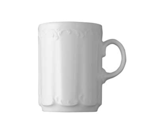 Mug, 8-1/2 oz., 2-1/2" dia., 3-7/8"L x 2-3/4"W x 3-7/8"H, dishwasher and microwave safe, Monbijou, white (Special Order Item)
