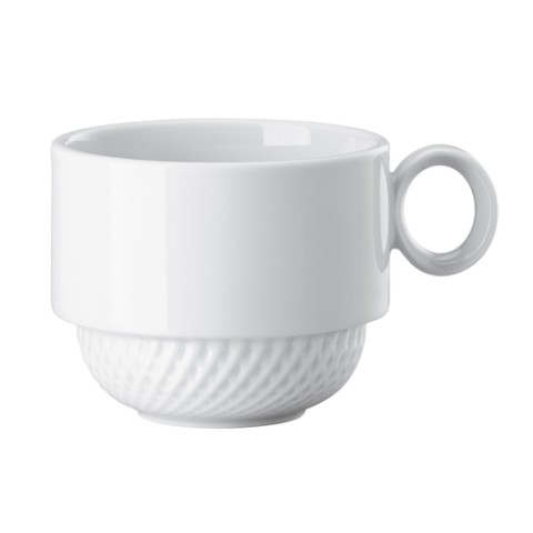 Cup, 8-1/2 oz., 3-3/8" dia., 4-3/8"L x 2-1/4"W x 2-3/4"H, with handle, stackable, microwave & dishwasher safe, porcelain, white, Rosenthal, Blend White (fits 11552-800001-14775)