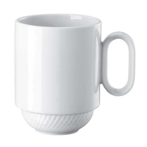 Mug, 13-1/2 oz., 3-1/4" dia., 4-5/8"L x 2-1/8"W x 4-3/8"H, with handle, stackable, microwave & dishwasher safe, porcelain, white, Rosenthal, Blend White (fits 11552-800001-14775)