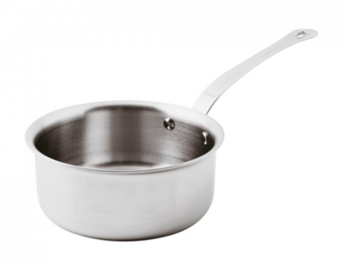 Sauce Pot, 2 qt., 7-1/8" dia. x 3-3/8"H, with handle, 5-ply, aluminum & stainless steel construction, 2.7 mm thickness, induction ready, stainless steel riveted handle, dishwasher safe, Paderno, Series 12200