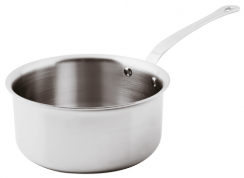 Sauce Pot, 3 qt., 7-7/8" dia. x 3-7/8"H, with handle, 5-ply, aluminum & stainless steel construction, 2.7 mm thickness, induction ready, stainless steel riveted handle, dishwasher safe, Paderno, Series 12200