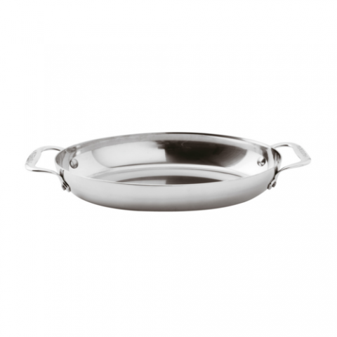 Baker, 1-1/2 qt., 11-3/4" x 7-1/8" x 2"H, oval, 5-ply, aluminum & stainless steel construction, 2.7 mm thickness, induction ready, dishwasher safe, stainless steel riveted handle, Paderno, Series 12220