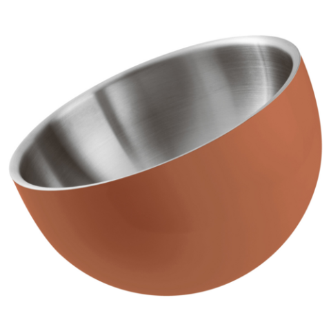 Double Wall Bowl, 2 qts., 9 1/2" dia., x 7 1/4"H, round, 3-ply, dishwasher safe, stainless steel construction, orange exterior, Paderno, Series 2300