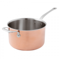 Sauce Pan, 6-5/8 qt., 9-1/2" dia. x 5-1/2"H, with loop handle, 3-ply, copper, aluminum and stainless steel construction, 2.5 mm thickness, induction ready, hand wash only, stainless steel riveted handle, Paderno, Copper Series 15600