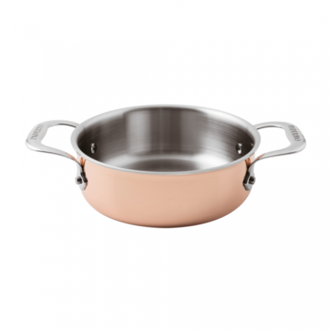 Casserole Pot/Rondeau, 3-3/4 qt., 9-1/2" dia. x 3-1/8"H, 3-Ply, copper, aluminum and stainless steel construction, 2.5 mm thickness, induction ready, hand wash only, stainless steel riveted handle, Paderno, Copper Series 15600