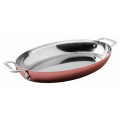 Oval Baker, 13-3/4" x 9", 3-ply, copper, aluminum and stainless steel construction, 2.5 mm thickness, induction ready, stainless steel riveted handle, Paderno, Copper Series 15600