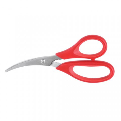 Paderno Seafood Shears, 3-1/8"W x 7-1/8"L, curved, hand-wash only, stainless steel blades, red handles, Paderno, Series 18200