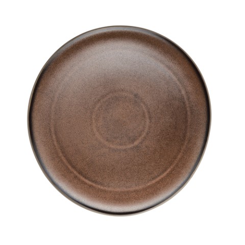 Plate, 11-3/4" dia., 11-3/4"L x 11-5/8"W x 7/8"H, round/free form, flat, microwave and dishwasher safe, stoneware/reactive glaze, Rosenthal, Junto, bronze