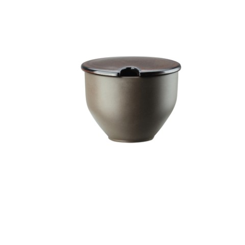 Sugar Bowl, 8-1/2 oz., 4-1/8" dia., 4-1/8"L x 4-1/8"W x 3-1/4"H, round, lid with indent, microwave and dishwasher safe, stoneware/reactive glaze, Rosenthal, Junto, bronze (fits Spare part: 21540-405252-64388)