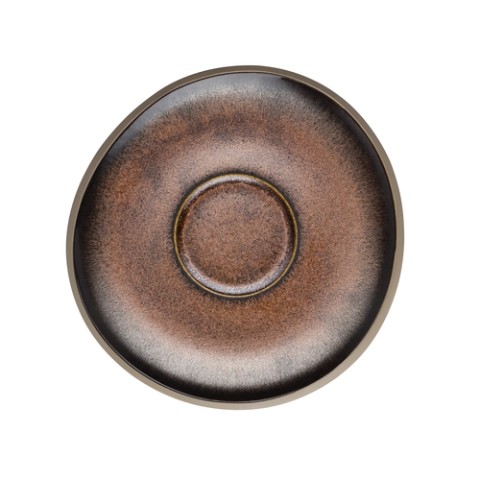 Saucer, 6-1/8" dia., 6-1/8"L x 5-7/8"W x 7/8"H, round/free form, microwave and dishwasher safe, stoneware/reactive glaze, Rosenthal, Junto, bronze (fits 21540-405252-64742, 21540-405252-64772, 21540-405252-65505)