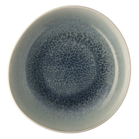 Plate, 11" dia., 11"L x 10-5/8"W x 2-1/2"H, round/free form, deep, microwave and dishwasher safe, stoneware/reactive glaze, Rosenthal, Junto, aquamarine