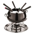 Meat Fondue Set, 7-7/8" dia. x 7-1/8"H, 10 piece set includes: (1) 1-1/2 qt. pot, (6) color-coded fondue forks, (1) pot holder, (1) burner with lid, (1) chromed steel tray base, Paderno, Tabletop