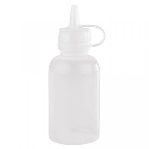 Mini Squeeze Bottle, 1.7 oz., 1-1/4" dia., x 3-3/8"H, set of 4, screw top attached cap, pointed tip, dishwasher safe, polyethylene, clear, Paderno, Bakeware
