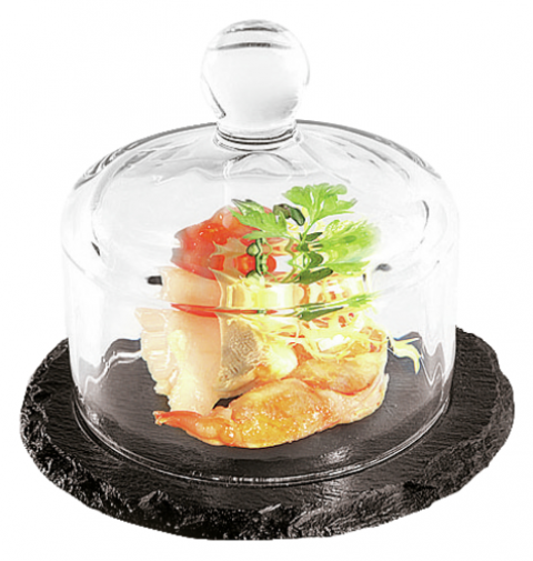 Plate, 4-1/4" dia., round, with dome, natural slate, Paderno, Tabletop