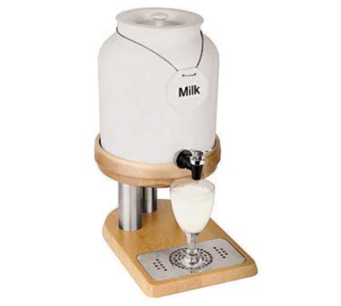 Milk Dispenser, 9" x 12-1/2" x 16-1/2"H, china body, beech-wood base (Special Order Item)