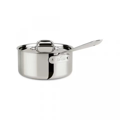 Sauce Pan, 3 qt., with lid, flared edge, induction ready, All-Clad, D3 Stainless Collection, Made in USA