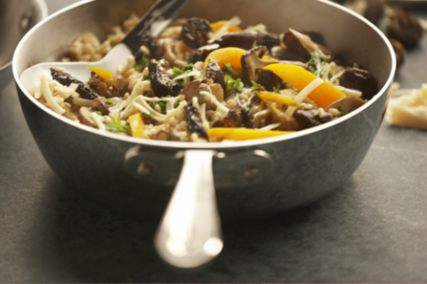 Saucier Pan, 2 qt., without lid, riveted handle, tapered sides, induction capable, tri-ply construction, 18/10 stainless steel and aluminum, mirror finish, All-Clad, Stainless Collection