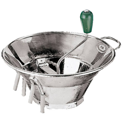 Food Mill, #3, 12-1/4" dia., 9-3/4"H, 5 qt., 3 lbs. per minute, three cutting plates 1/16", 3/32", 5/32", tinned steel, Paderno, Tools & Utensils