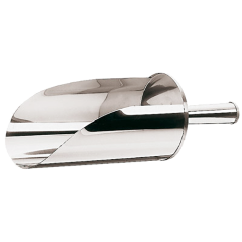 Flour Scoop, 1 qt., 4" dia. x 7-5/8"L, half open, cylindrical, short, 5-1/8" rounded handle, comfortable grip, stainless steel, Paderno, Bakeware