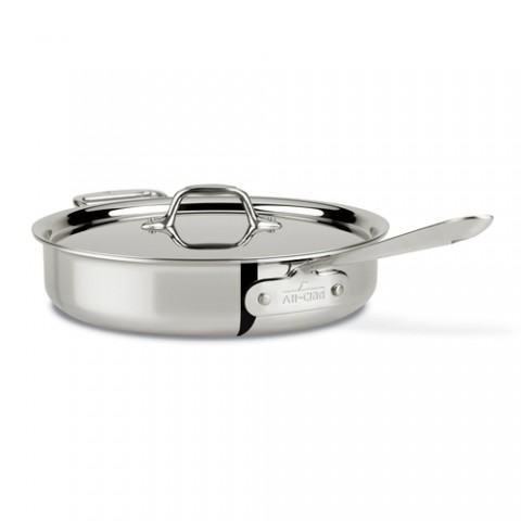 Sauté Pan, 3 qt., 11-1/3" dia. x 5" H, with lid, riveted handles, induction capable, tri-ply construction, 18/10 stainless steel and aluminum, mirror finish, All-Clad, Stainless Collection (Special Order Item)