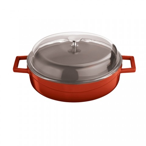 Casserole Pot, 81 oz., 9-1/2", with glass lid, dishwasher safe, Enameled Cast Iron, red (Special Order Item)