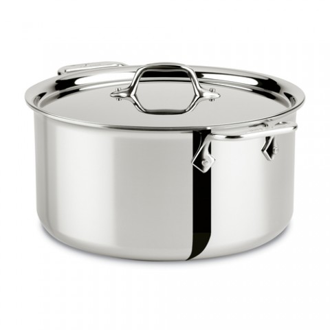 Stockpot, 8 qt., with lid, riveted handles, induction capable, tri-ply construction, 18/10 stainless steel and aluminum, mirror finish, All-Clad, Stainless Collection (Special Order Item)