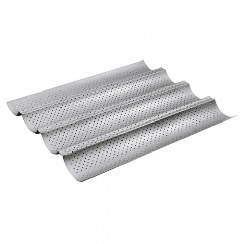 Baguette Pan, 14-7/8"L x 12-7/8"W x 1"H, 4 rows, steel with non-stick coating, Paderno, Bakeware