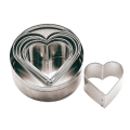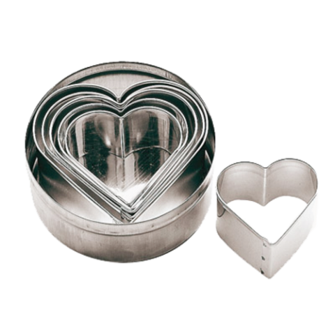 Dough Cutters, 1-3/4"-3-3/8" dia. x 1-1/8"H, heart, 6 piece set, stainless steel, Paderno, Bakeware