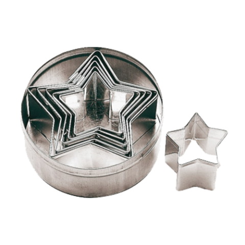 Dough Cutters, 1-5/8"-3-1/2"W x 1-1/8"H, star, 6 piece set, stainless steel, Paderno, Bakeware (Special Order Item)