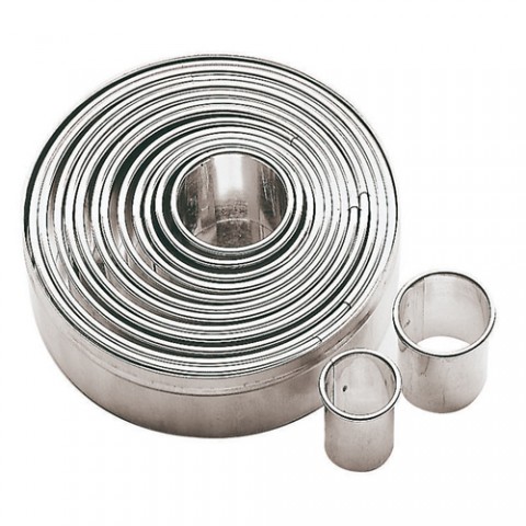 Dough Cutters, 3/8" - 4-1/4" dia. x 1-1/8"H round, plain, 14 piece set, stainless steel, Paderno, Bakeware
