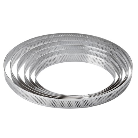 Tart Ring, 2-3/4" dia. x 7/8"H, round, perforated, smooth interior, flat edge, welded, dishwasher safe, stainless steel, Paderno, Bakeware